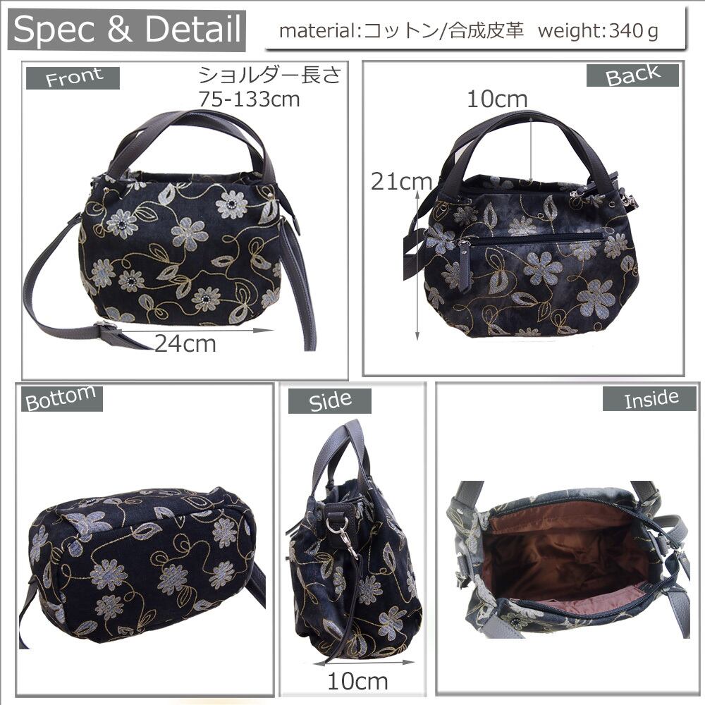 weight:340g size:W24 H21 D14 持ち手立ち上がり10 付属ショルダー長さ75-133cm