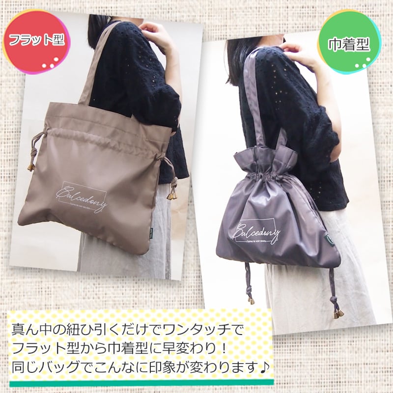 上部の引手を引くと巾着デザインにワンタッチで変わります。