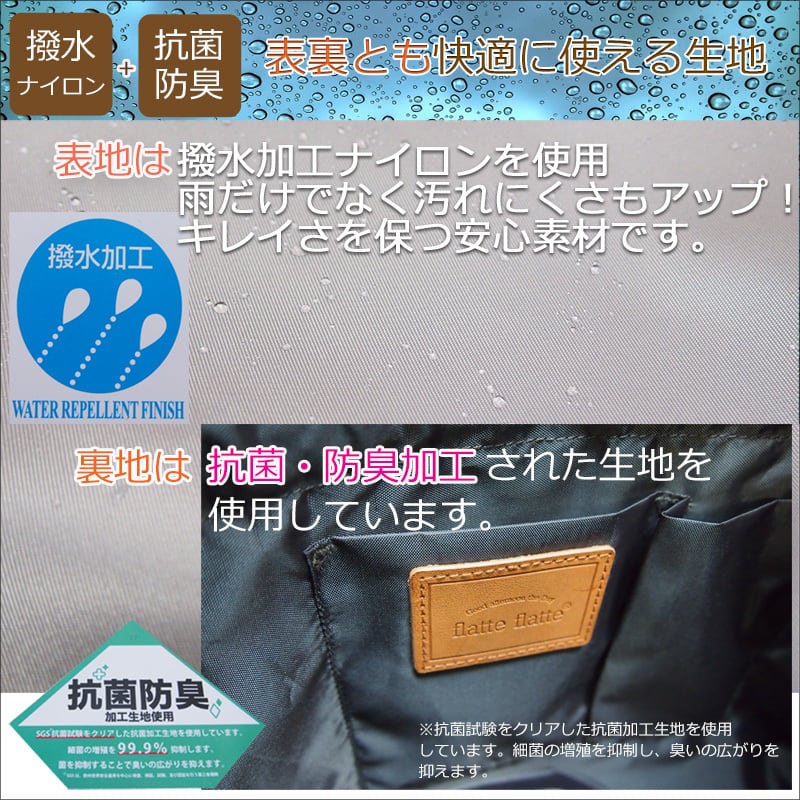裏地には抗菌・防臭素材を使用してあり清潔に使えます。