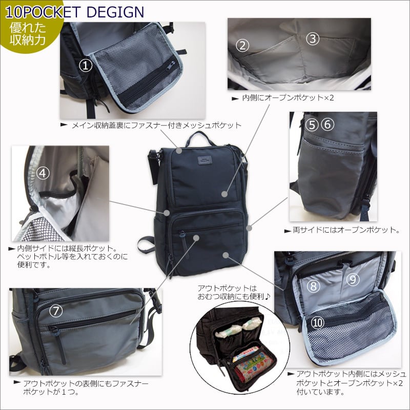comments:こちらは多機能で使いやすいマザーズリュックです。