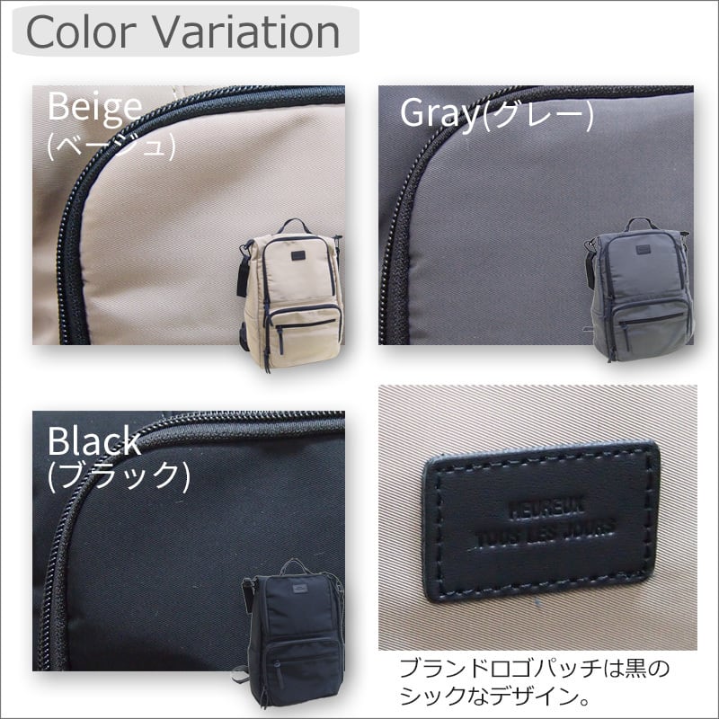 シンプルなデザインと落ち着いた色目で、ユニセックスで使えるリュックです。