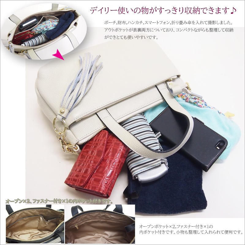 付属ショルダーで斜め掛けや肩掛けにでき、休日のお出かけや