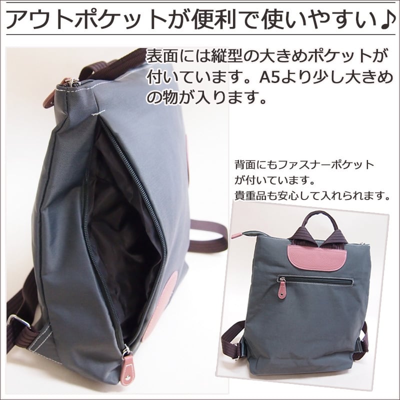 上部には持ち手も付いており、背負わない時もさっと手持ちができ使いやすいです。