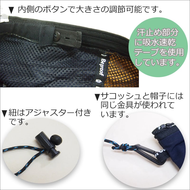 汗留めは速乾テープを使用しており、 暑い日も快適に被れます。