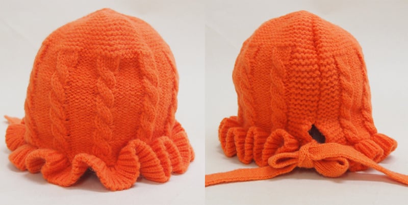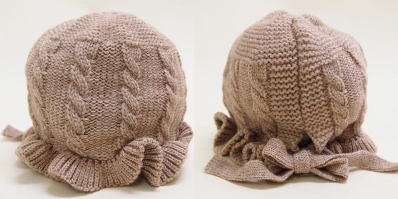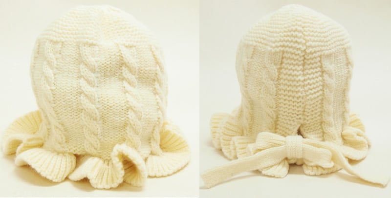 ケーブル編みにパイピングを付けた凝ったデザインです。