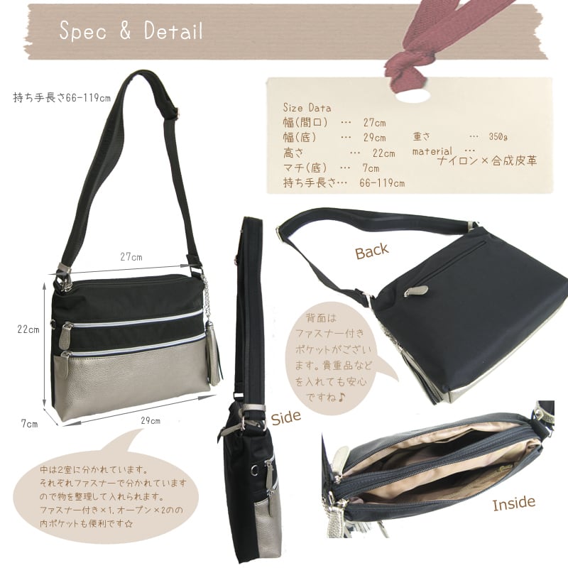 サイズ:W(底)29(間口)27 H22 D7 ショルダー長さ66-119cm