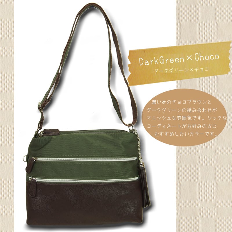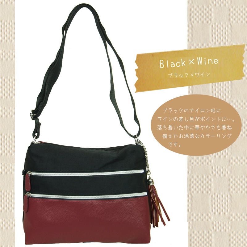 comments:こちらは2トーンカラーですっきりとしたデザインがおしゃれな斜め掛けバッグです。