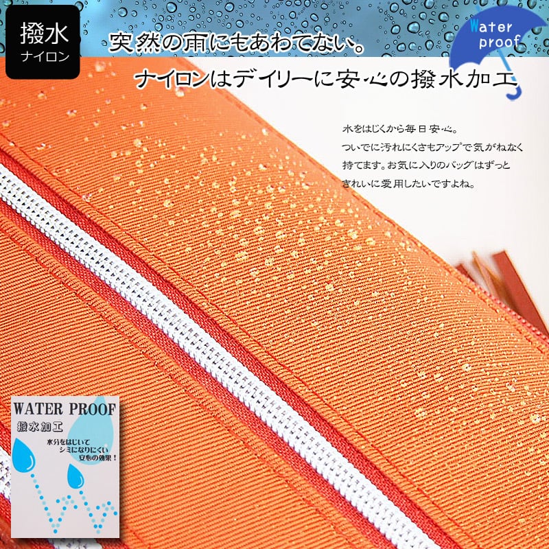 ナイロン部分は撥水加工ナイロンを使用しており、雨の日も安心です。
