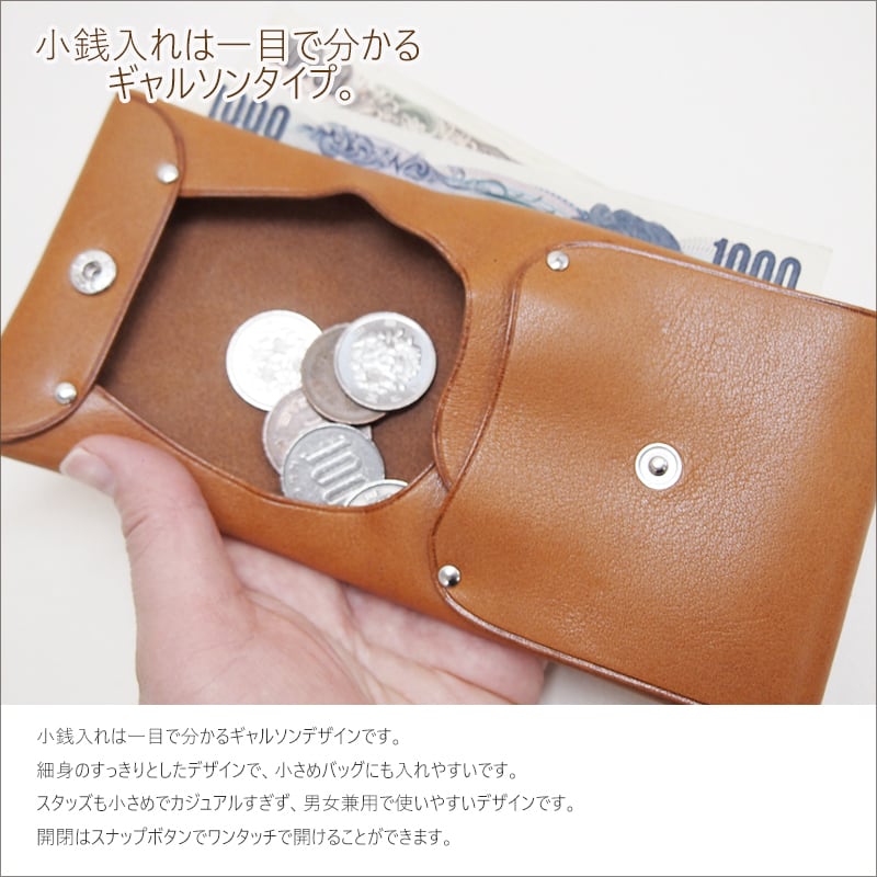 小銭入れは傾けると小銭が一目で分かるデザインで、