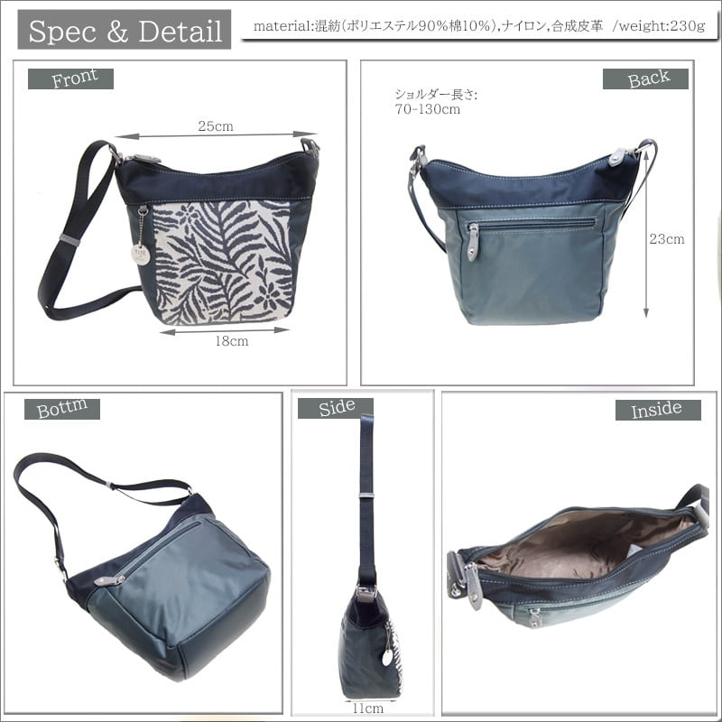 comments:前面のボタニカル柄が印象的なショルダーバッグです。