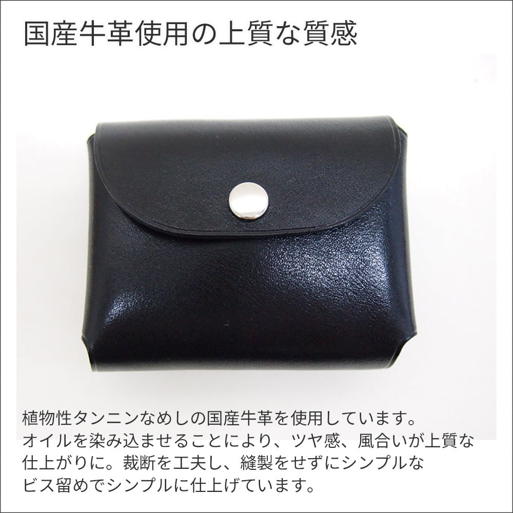 植物性タンニンなめし革を使用しており、経年とともに変化する風合いも楽しめるナチュラルな素材です。手に収まるコロンとした愛らしいフォルムです。小銭入れはスナップボタン付きです。