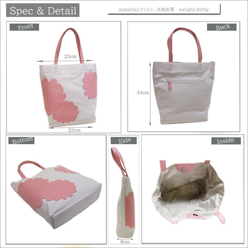 ・comments:こちらはコットンキャンバスにフラワーモチーフを配したトートバッグです。